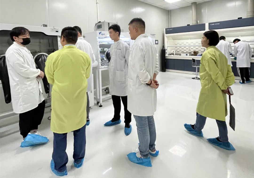 華碧總裁劉學森對蔣方舟博士一行的到來表示熱烈歡迎,并陪同參觀了華碧新能源柔性鈣鈦礦太陽能實驗室、鈣鈦礦材料實驗室、組件技術實驗室、分析檢測中心等實驗室平臺。蔣方舟一行重點考察了華碧新能源的科研進展和儀器設備配置情況,雙方就鈣鈦礦太陽能薄膜的技術及應用等問題進行了交流。