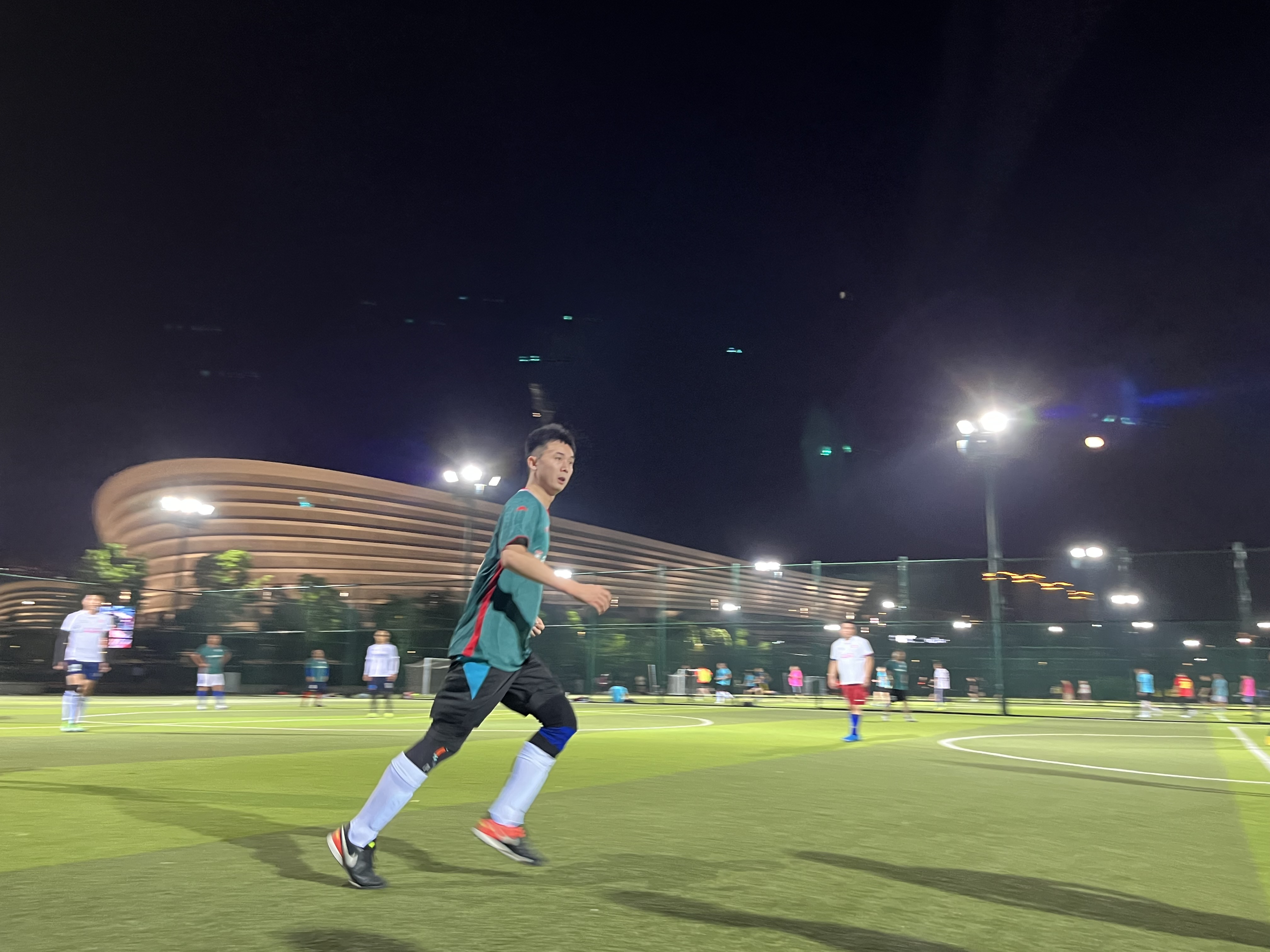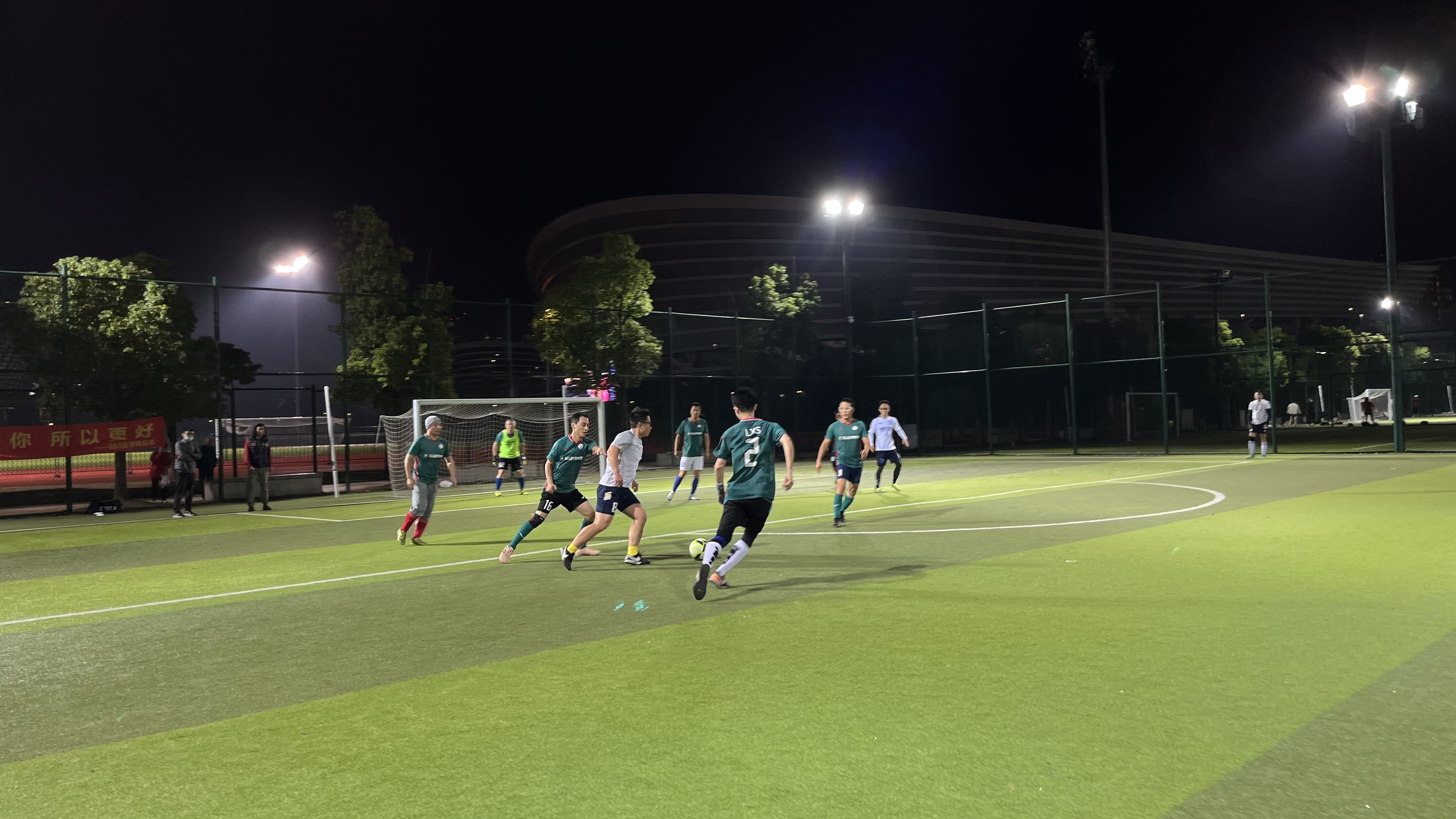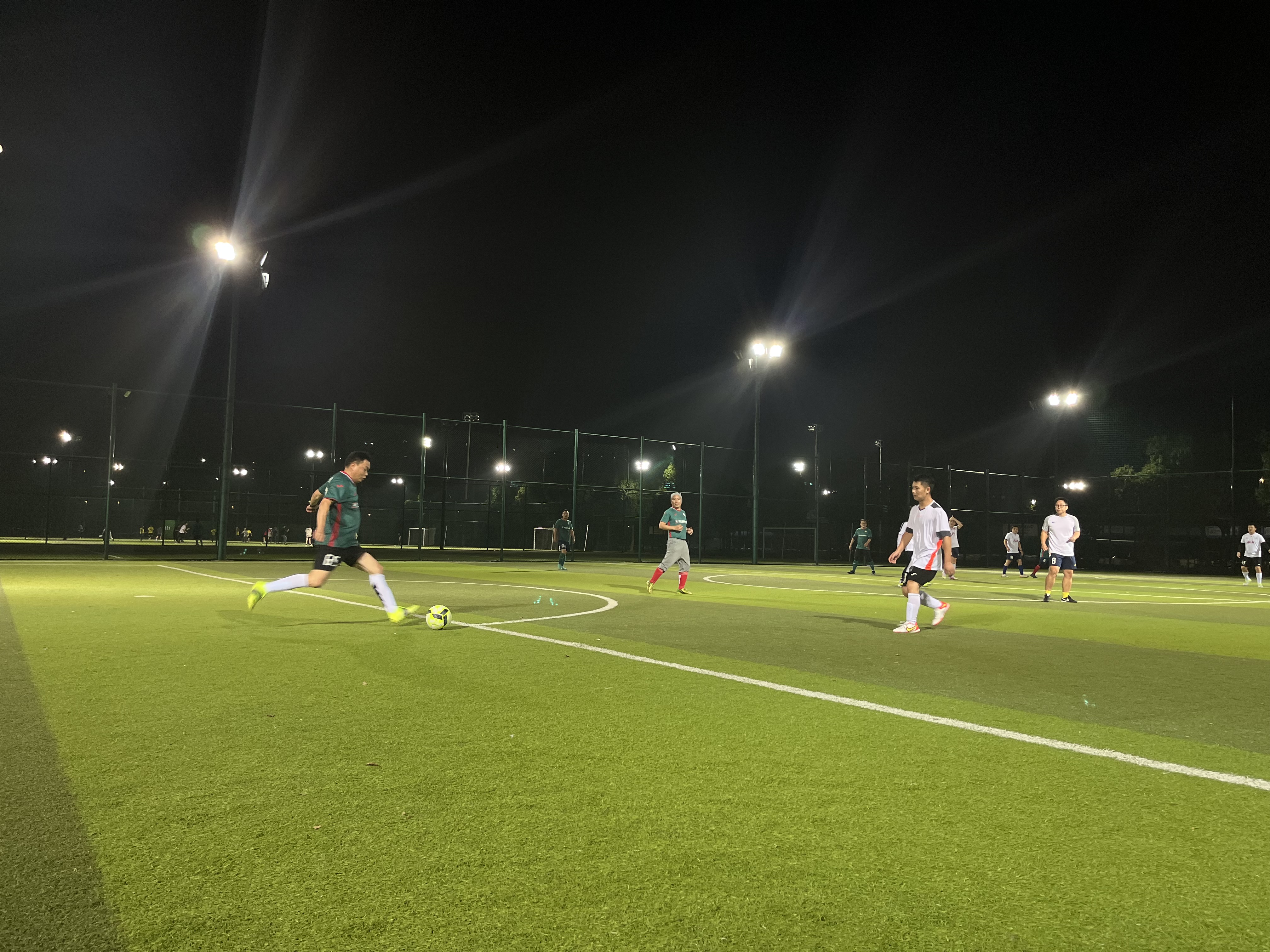 晚上8點整,隨著裁判員的一聲哨響,第一輪比賽揭幕戰(zhàn)正式打響,球員們技術(shù)嫻熟,身姿矯健,在綠茵場上奔跑如風(fēng)。在整個比賽過程中,兩隊球員都熱情高漲、斗志高昂,充分展示默契的配合和精湛的球技,積極跑位、奮力拼搶,展現(xiàn)了良好的團(tuán)隊協(xié)作精神,踢出了各自隊伍的特色。場下助威團(tuán)激情澎湃,加油聲此起彼伏,伴著場上球員的吶喊聲、裁判員的吹哨聲以及在場所有觀眾的陣陣掌聲,共同演奏了一支催人奮進(jìn)的交響曲。